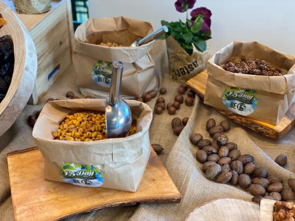 שולחן שוק מלא בכל טוב של פירות יבשים פיצוחים ומתוקים לבחירתכם.